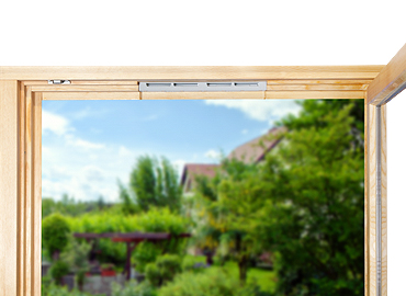Diese Systeme sind handliche Lüftungseinheiten, die in den Falz des Fensterrahmens eingebaut werden (siehe Abbildung). Sie arbeiten mit einer integrierten Windruck-Regulierung - einer Klappe, die die Luftzufuhr bei zu starkem Wind bremst. Die Regulierungsklappe pendelt nach beiden Seiten frei, das heißt, sie regelt die Frischluft, die hereinströmt genauso, wie die verbrauchte Raumluft, die auf der gegenüberliegenden Seite des Hauses abgesaugt wird. Fenster-Falz-Lüfter eignen sich ideal für den nachträglichen Einbau.